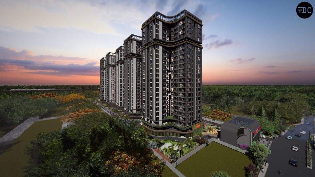 Despite the complexity of having different unit configurations in each building, the architectural strength of TDC-PUNE lies in its ability to present the entire development as a single, cohesive township expression. From the outside, the project reads as one complete architectural language—balanced, elegant, and visually harmonious—ensuring that variation in internal planning never disturbs the overall identity.