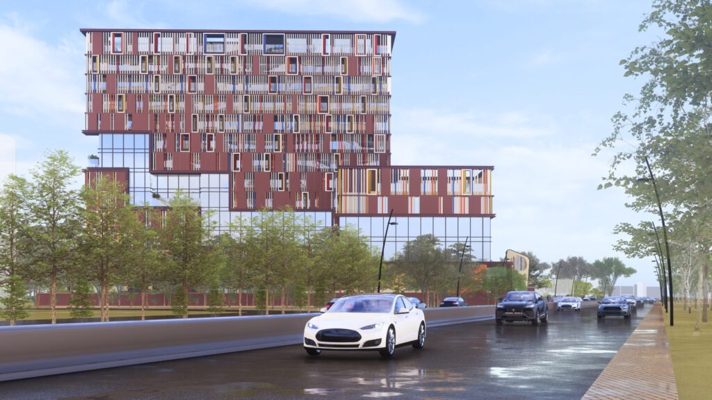 Material expression plays a key role in shaping the campus identity. The use of terracotta, glass, vertical fins, and layered terraces creates a balanced architectural language—warm, contemporary, and deeply contextual. Carefully curated colours are introduced as symbolic expressions of youth, energy, and creativity, making the campus visually engaging and emotionally connected to its students.